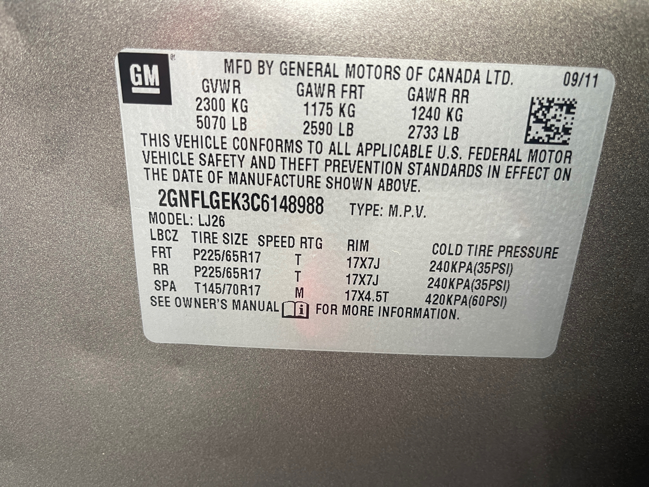 Vin: 2GNFLGEK3C6148988