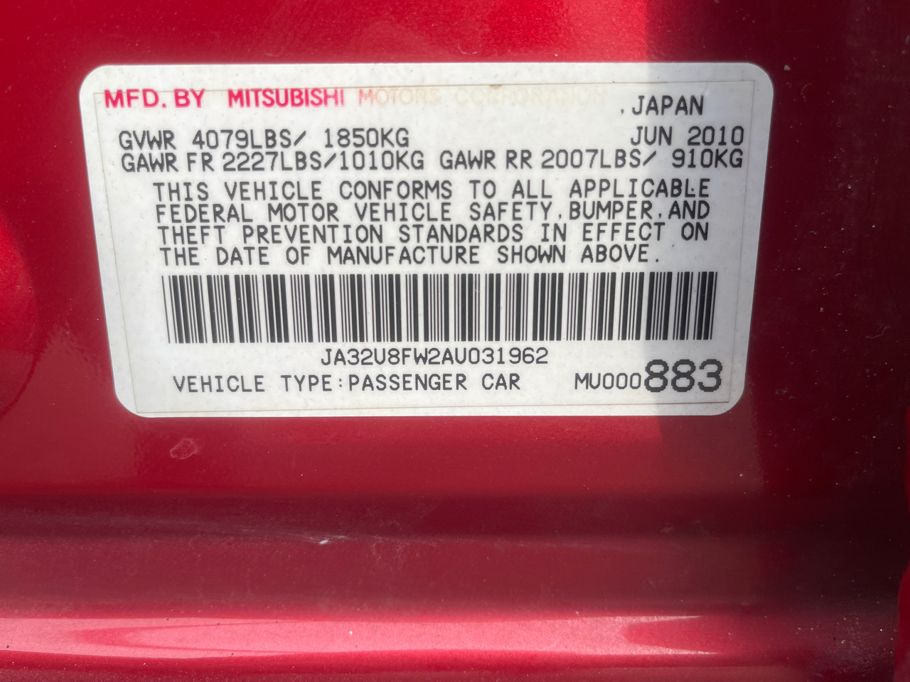 Vin: JA32U8FW2AU031962